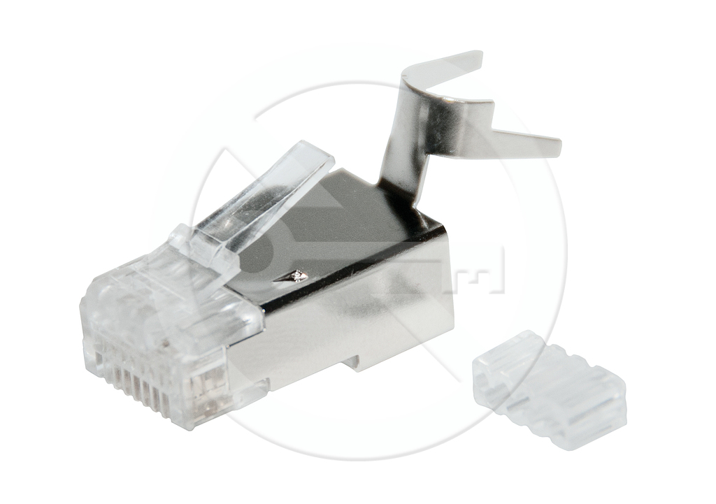 Shielded RJ45 8p8c connector. For wire conductor, round cable category 6A and category 7. With plug.