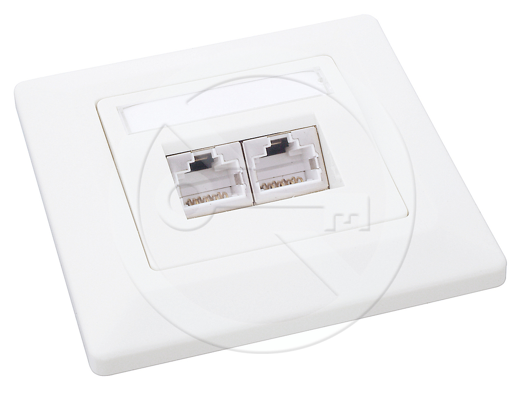 Shielded dual-port SX9 Category 5E outlet, white.