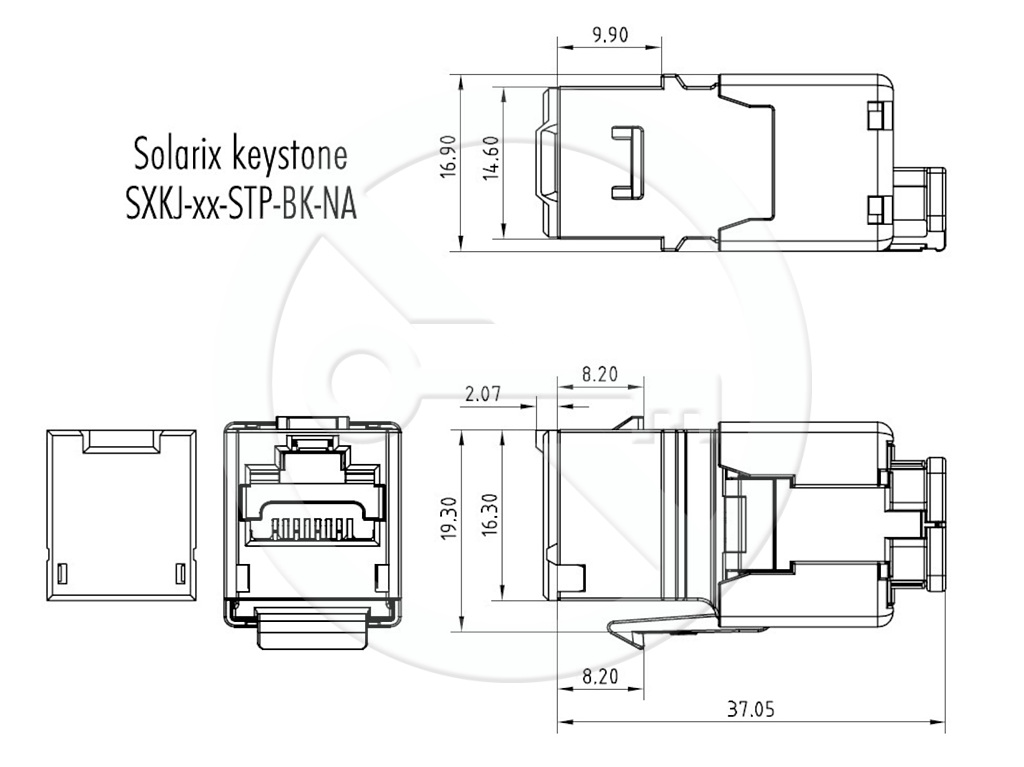 Product Keystone Solarix CAT5E STP RJ45 quick tool SXKJ-5E-STP-BK-NA - Solarix - Keystone Jacks