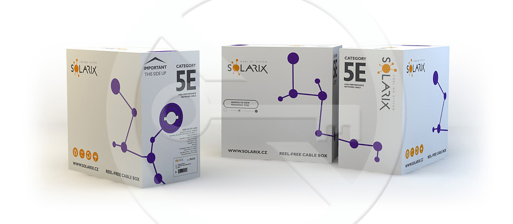 The Solarix installation cable with the designation SXKD-5E-UTP-LSOH is a reliable unshielded Category 5E cable that has been tested up to a bandwidth of 350 MHz and is designed for Ethernet protocols, including 2.5GBASE-T and 5GBASE-T*. The cable construction is U/UTP, LSOH jacket type with Dca-s1,d2,a1 reaction to fire class. The cable conductors are made of high-quality copper wire with 99.97% copper purity. The cable easily meets the requirements of international standards ISO/IEC 11801, EN 50173, and ANSI/TIA 568.2-D. The performance parameters of this cable have been tested by the independent testing laboratory FORCE TECHNOLOGY as part of the EC Verified program, at the highest level, known as Component Level. The certificate is available here on the website under the "Downloads" tab or directly on the FORCE laboratory website. In the case of CPR (EU Regulation No. 305/2011), the cable is tested in the AVCP 3 property assessment system. Like other Solarix cables, the SXKD-5E-UTP-LSOH cable is marked in 1 m increments from 0 to 500 m. The cable is supplied in a highly durable three-layer polished cardboard box (always color-coded according to cable type), which contains all the necessary product information, including barcodes, production batch, description, and the most important technical parameters.