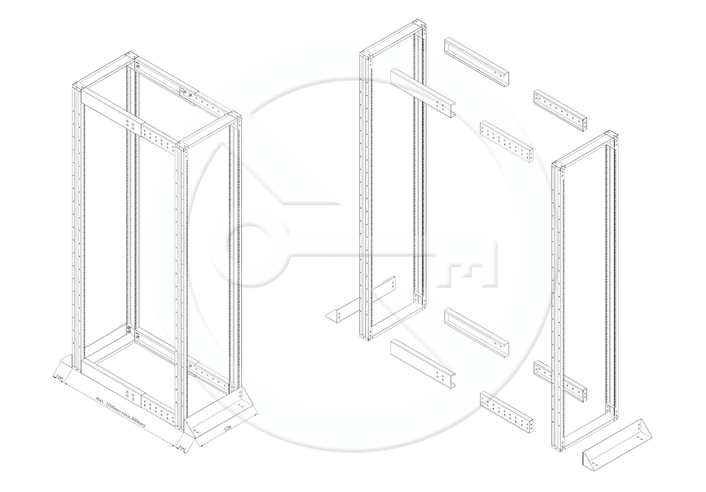 Signamax high-load open frames provide a suitable and effective way of housing network equipment in technology-dedicated environment (i.e. dust free server rooms with authorized personnel access). They are produced using solid and high-quality steel sheets that allow for total load capacity of 1200 kg. Signamax high-load frames have adjustable rear posts which can be fixed anywhere between 600 to 1000 mm of depth. This makes these Signamax frames very flexible in use for a variety of network equipment (e.g. large servers, UPS products, disk arrays etc.). Mounting kit is included in standard delivery.